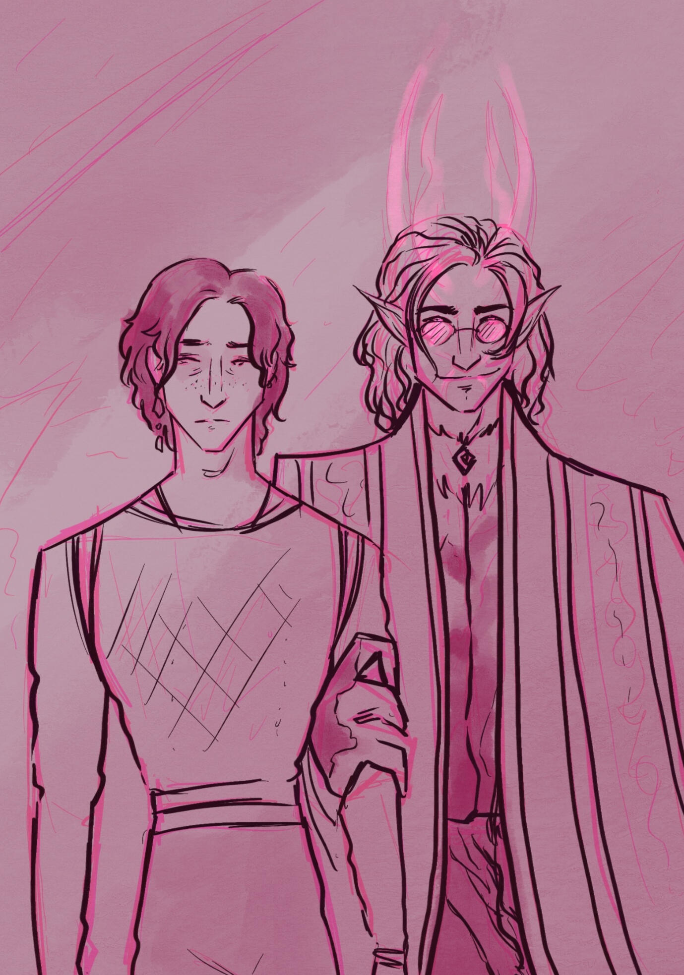 The remains of the boy’s house had been cleared away, and a new home built upon them, and the boy was gone. He found him eventually - behind the desk of an apothecary - many miles from the remains of that house.The brilliant could not hide. Like a fire, they burnt everything they touched, and Gullistan needed only to follow the trail of smoke.The potion maker had bragged about the skills of his apprentice - talented and sharp as a blade - young Augustine.Gullistan watched him for a moment through the window, assuring himself he had found his target, before he stepped inside.Augustine was writing something in a small book, and looked up as he entered.He recognised him - his eyes told Gullistan as much. He looked him over, undoubtedly reconciling his appearance, but if he had any opinions about it, he voiced none.It disappointed Gullistan that his response was so small, so he tilted his head, and sought a bigger one.“Did you think you could run from me, Augustine?”Augustine closed the book.“It’s been six years,” he said, “I hadn’t expected to see you again.”“Has it?”For Gullistan it had not been so long - although he supposed it had not been no time at all - it had been a little frustratingly slow to find this vessel - he could still feel the itching in his limbs for the wait.Certainly, the boy looked different, the years had sharpened his jaw, refined the proud sharp bump in the bridge in his nose, graced his skin with a few more of those dark freckles that couldn’t help but betray the severity of his expression, making him prettier than he wanted to look.And he had become so very pretty.“Why am I seeing you again?” Augustine asked, turning away from him and tending to the shelves and tinctures with great focus. His hair was shorter, cropped in boyish curls.“I’ve come to collect,” Gullistan said simply. “Payment is due.”Augustine barely looked back at him, stacking a few items upon a rack, but his nonchalance was pretense.“Payment? I wasn’t aware you upheld your part of the deal,” he said.“Oh I think I did - tell me, are you parents free of their predicament? Are they still worrying about their debt, as I promised they never would again?”Augustine’s face went hard, and he turned now to him.“Ah,” he said, “so you’re fey; as I suspected you were.”Gullistan would have been disappointed if he hadn’t.“Astute. You wouldn’t guess a devil first? Why?”“Devils like paperwork, and your hands have always been empty,” Augustine replied sharply, then straightened. “I owe you nothing. My mother made that deal.”“Ah, so she did, but its terms did not die with her,” Gullistant smiled, and Augustine didn’t manage to hide his flinching, winding tightness in response.“You are correct, I’m no devil,” Gullistan agreed, “and as such - you cannot step out of what is owed by a technicality. A deal is a deal, and you - my willful boy - were the payment. I’ve come for what I’m owed.”Augustine was very still, but his eyes were full, whirring and rattling - considerations churning behind them.Eventually, they flinched.“Will there be an end?”“Yes,” Gullistan said, “when our work is complete, there will be an end.”Augustine swallowed.“... do we have to leave now?” He asked, voice quietening a little.“Why,” Gullistan asked, sensing a fragment of hesitation, “is there someone you wish to say goodbye to? I can escort you to them to make your farewells.”Augustine shook his head, very quickly.“No,” he said, and Gullistan knew it was a lie, “there is no one.”