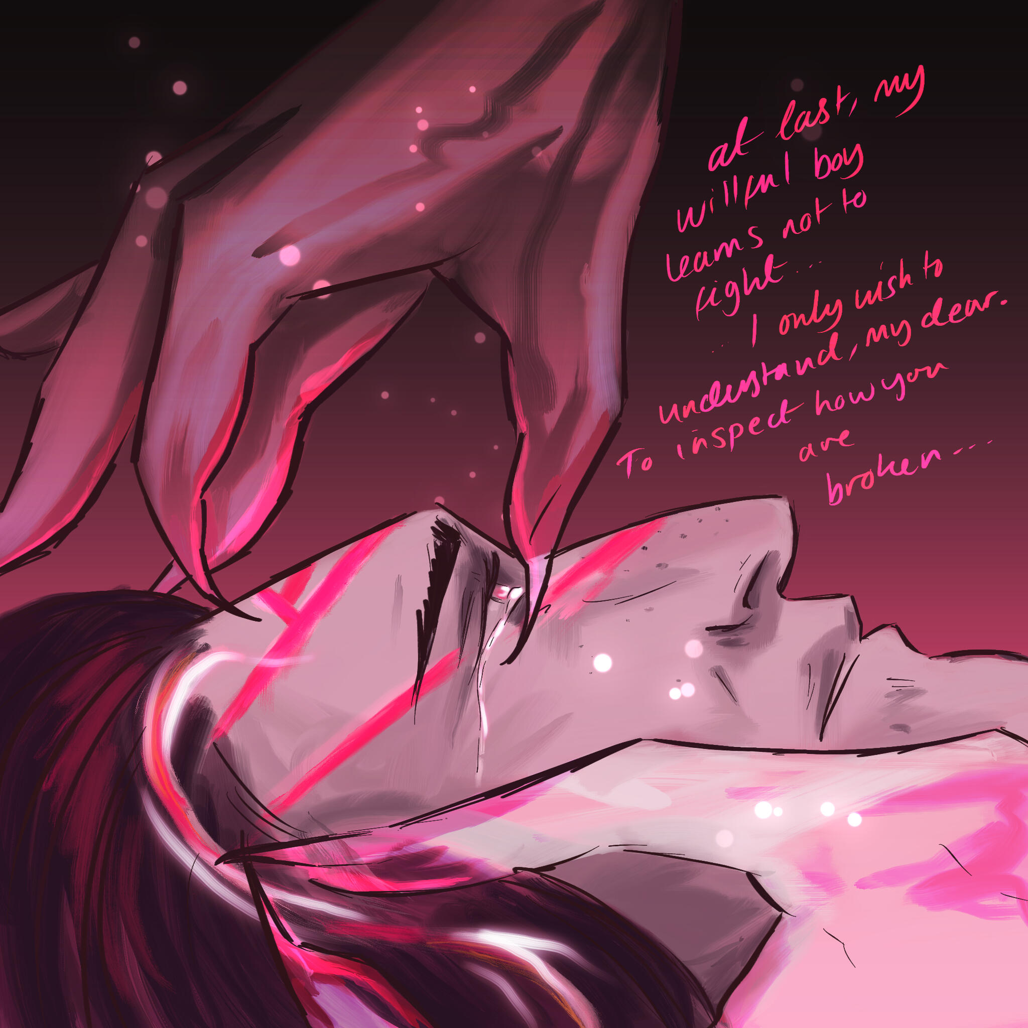 To allow it to slip past him once was a mistake. To allow it twice - to find himself trapped as the arcane chains tightened around frozen limbs - was a mistake unforgiveable.You've allowed compromise; and you will face the consequences."Can you hear them?" Augustine whispers in his ear as his fingers rest upon his neck, leaning in, "can you hear them sing?"The chorus is quiet at first - overlapping whispers, like the tremoring strings of an orchestra in the moment before they begin. Then it is deafening.Howls. Cruelty. Pain and horror and terror and agony and the pit deep destruction of hearts torn apart. All of it at once. A choir of torment."It is for you. Your chorus of the broken," Augustine says quietly, his voice piercing through the relentless barrage of noise, "the stolen minds you have enslaved and tortured, singing as one."Enver cannot move. His mind screams too as the voices overwhelm him, and it feels as if his skull might crack."So mournful it drove your workers to madness," Augustine's lips brush his ear softly."Bathe in this, Little Dictator. It is all your design."